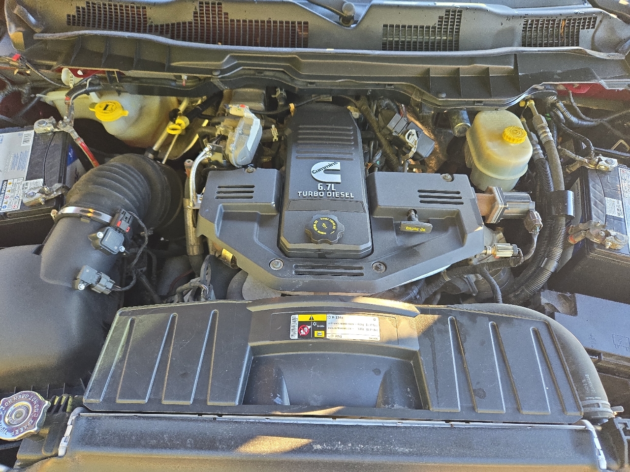 Great miles on this extra sharp Ram 3500. 350 HP Cummins diesel, NO DEF!!!, ice cold A/C, 17'' factory alloy wheels w/ very good Cooper A/T tires, spray in bed liner, frame mounted hitch and all power equipment.